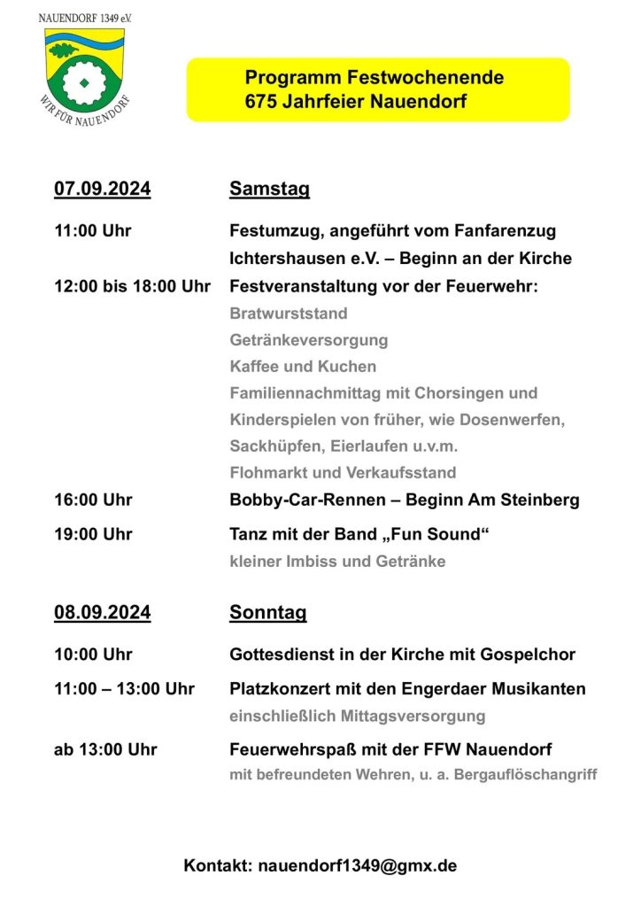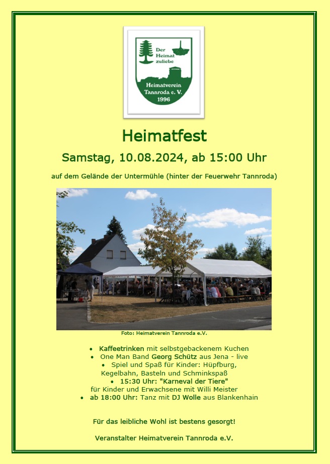 Am Samstag dem 07.09.2024 ist der Heimatverein Tannroada e.V. mit einen Informationsstand in Nauendorf zum Festwochenende 675 Jahrfeier Nauendorf mit unseren Korbflechter Frank Brömel vertreten.